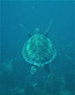 Dive #2 started in the white hole and ended in turtle city . In the white hole, fish and marine life go to rest from the current. We saw at least 15 tarpon and a very large lionfish plus 2 large turtles chilling. Then we swam over a grove of sea fans which were beautiful as they swayed back and forth in the current changing colors from one side to the other until turtle city. As soon as we got there, I saw 6 turtles, all in a row!! Over the course of this second dive, I counted 37 turtles but the divemaster said she counted more than 60. Of course, I was wasting time looking at individual turtles and getting close to them and taking pictures of course. Some of the turtles were napping or resting - very cool! (very similar to posing) We saw another eagle ray. It was a fantastic dive.