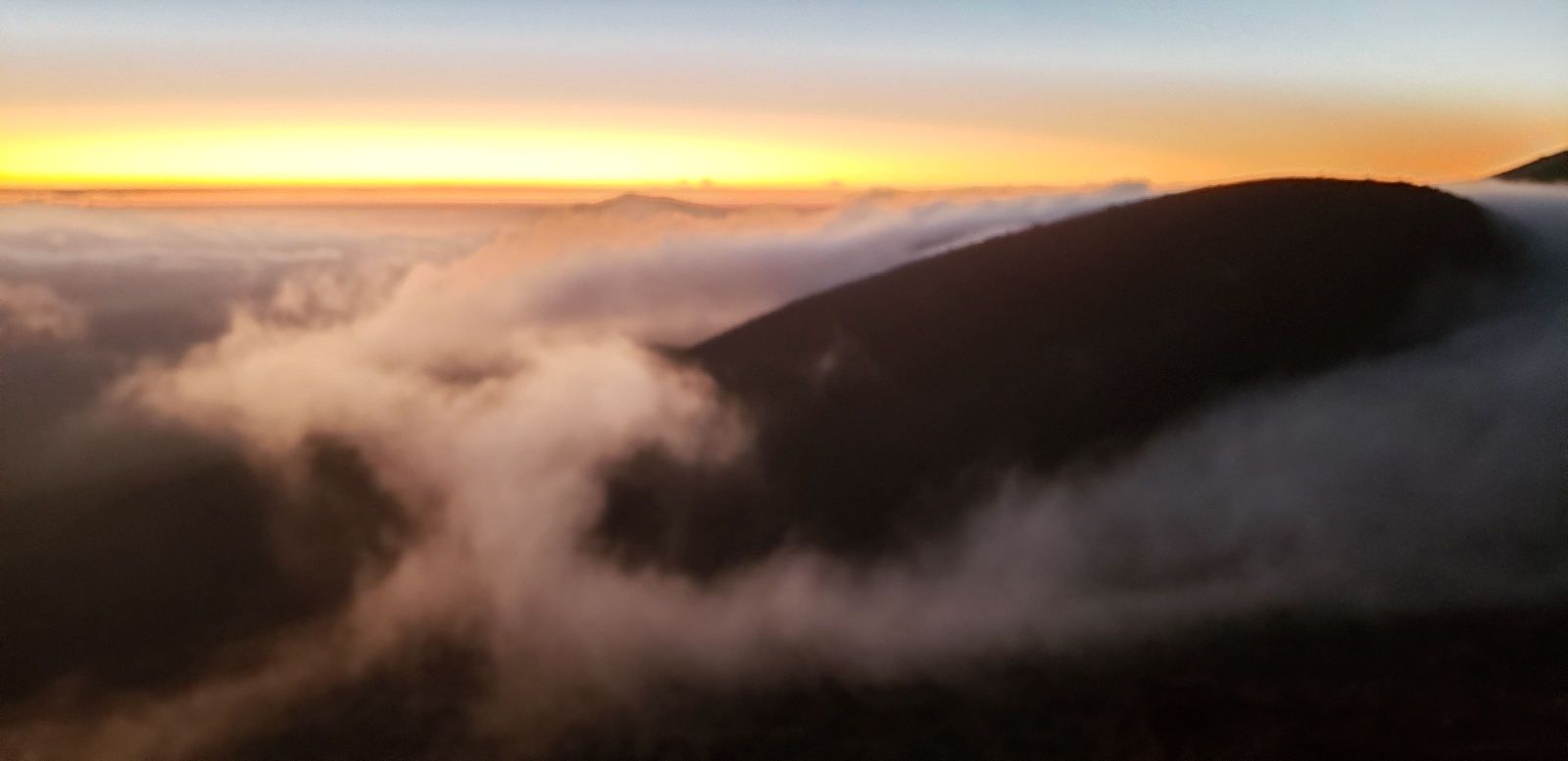 Maunea Kea - 14,000 feet high. We ended up just stopping at the visitor center at 9000 ft and hiking up a nearby hill to watch the sunset. It was beautiful because we were above the cloud layer. It was also cool to watch the clouds roll in and envelop the mountains.